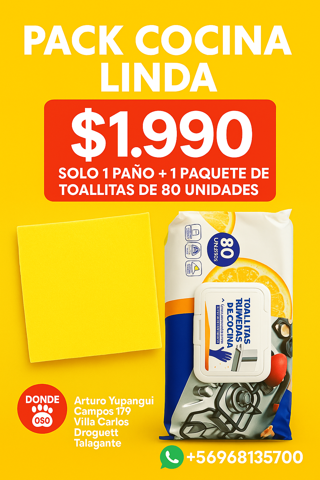 Pack toalla humeda cocina mas paño absorvente amarilllo